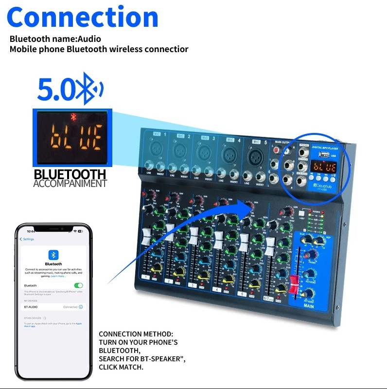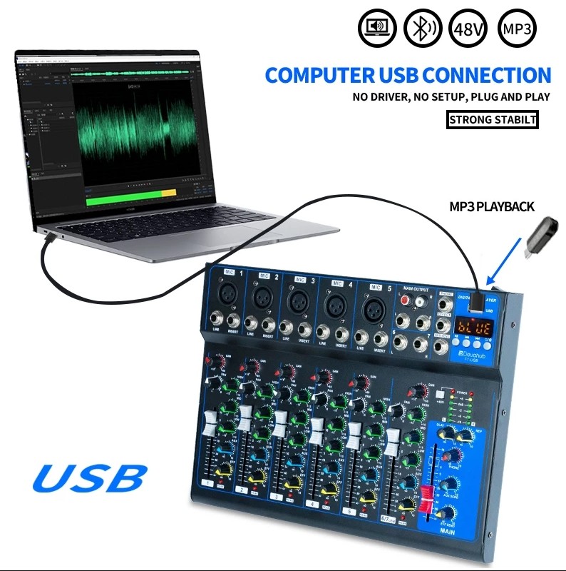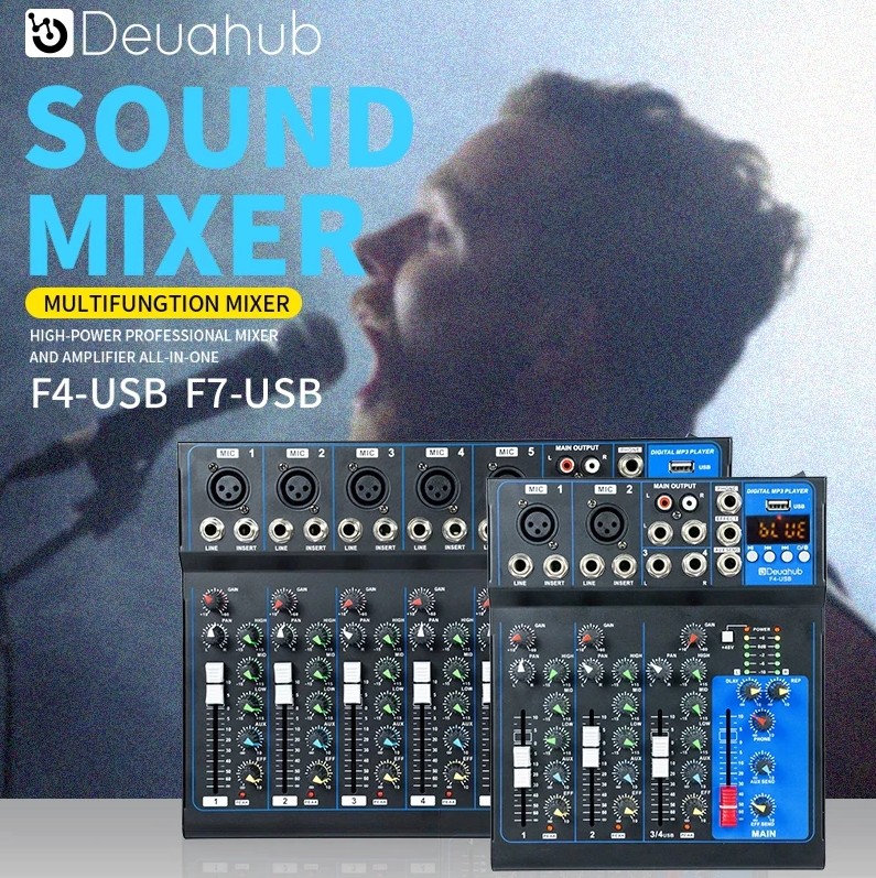 ✅Deuahub F4/F7-USB Professional Audio Mixer 4-channel built-in EQ/recording Suport bluetooth USB MP3