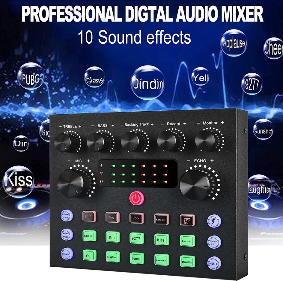 Product details of Popcorn F998 Sound Card Microphone Mixer Kit 16 Sound Effects Audio Recording Sound Mixer Audio Amplifier